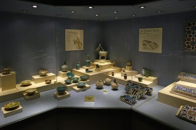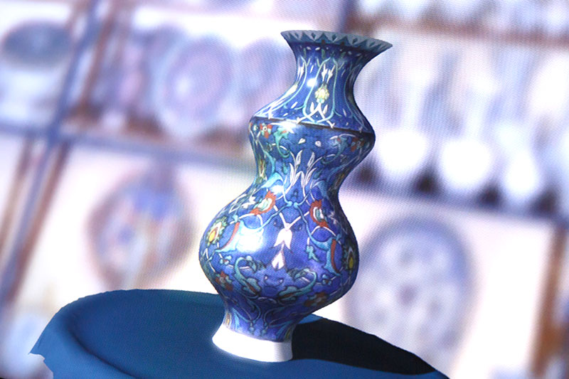 Sembolik kabrin diğer tarafındaki odalarda ise cam ve porselenler sergileniyor. Selçuklu seramikleri, İznik çinileri görebileceğiniz eserler arasında. Müzenin en interaktif kısmı ise yine bu alanda. Ortada bulunan bir ekran aracılığı ile kendi seramik ya da cam şeklinizi yontarak oluşturup süsleyebiliyorsunuz.