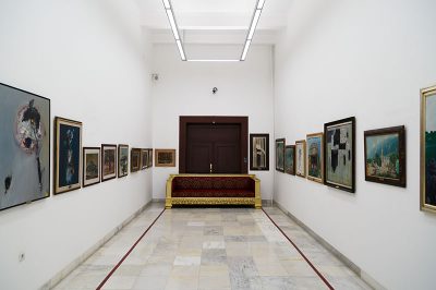 Müzede daimi sergilerin teşhir edildiği 6 salon, dönemine göre değişen sergilerin sergilendiği 3 salon ve çeşitli atölyeler bulunuyor. Bina, Kültür Bakanlığı’na devredildiğinde içinde önemli eserler bulunuyordu. Bunların en ünlüleri, İstanbul Arkeoloji Müzesi’nin kurucusu Osman Hamdi Bey‘in Silah Taciri, Rus ressam Vasili Vereşçagin‘in Timur’un Mezarı Başında, Osmanlı döneminde saray ressamı olarak çalışan İtalyan ressam Fausto Zonaro‘nun Genç Kız Portresi, Emel Korutürk‘ün Gazi’ye Şükran adlı tablolardır.
