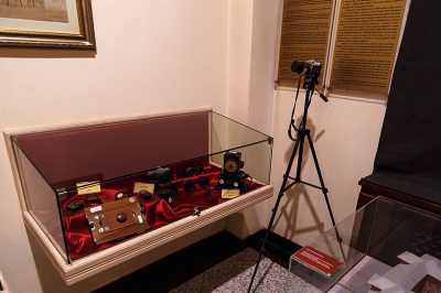 Vakıf Eserleri Müzesi’ndeki odalardan küçük bir tanesi ise klasik saatlerin ve eski fotoğraf makinelerinin sergilendiği bir alana dönüştürülmüş. 1980’li yıllarda kullanılan poz saatleri, pozometreler sergilenen eserlerden.