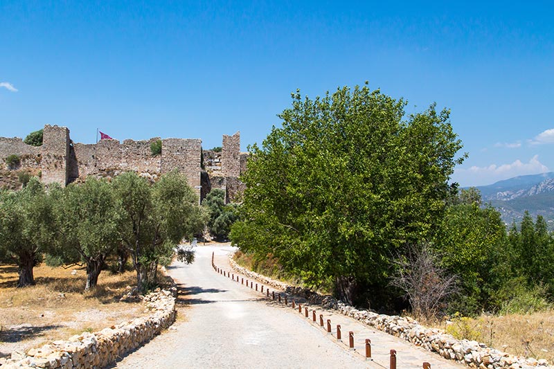 Muğla Bodrum ya da Milas Ören yolu üzerinde giderken sağa doğru Beçin Kalesi tabelası görünür. Beçin’e vardığınızda 200 metre yükseklikteki kaleyi görürsünüz, kahverengi tabelaları da takip edin. Beçin Kalesi’nin girişine vardığınızda çatı altında birkaç yapı görünür. Antik döneme ait duvarlar, hamam ve sarnıç vardır önce bu meydanda. Kalenin asıl girişi daha yukarıdadır. Beçin Kalesi’nin girişine vardığınızda sıcak havalarda içeride duran görevliler görünmediği için kapalı zannedebilirsiniz. Ücreti ödeyip ya da Müzekart’ı gösterdikten sonra aracınızla daha yukarı, kalenin girişine kadar girebilirsiniz. Kalenin girişinde bir türbe bulunuyor, oraya parkedip yaya olarak devam etmeniz gerekir. Kalede duvarlardan başka bir şey olmadığından gezmeniz çok vakit almaz. Zeminin bakımsızlığından dolayı da her yeri rahatça gezmeniz pek mümkün değil.
