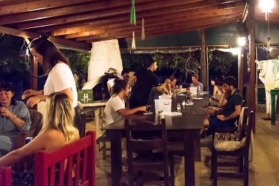 Akşamları herkes ortak alanda koltuklarda hep birlikte sohbet ediyor, eğleniyor. İnsanlar bütün akşam demlenen çaylarını ya da içkilerini içiyorlar, isteyen satranç ya da tavla oynayarak eğleniyor. Ekin ve orada tanıştığımız Hollanda’dan gelip Türkiye’de Erasmus yaptıktan sonra ülkenin kıyı şeridini gezmeye karar veren Jimmy küçük bir satranç kapışması yaptılar. Bazı akşamlar da enstrümanlar çıkıyor ortaya ve şarkı söylenip dans ediliyor. Misafirlerin büyük bir kısmını ülkemizde dolaşan, tatil yapan gezgin yabancı arkadaşlar oluşturuyor. Kamp akşamınızı, isterseniz çadırınızın yanında sessizce huzur içinde geçirebilir, isterseniz de farklı şehirlerden ülkelerden gelip yolu bu müthiş yere düşmüş arkadaşlarla sohbet ederek değerlendirebilirsiniz.