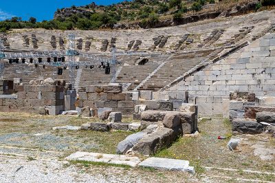 Zeki Müren’in evinden Bodrum’da açık hava konserlerinin yapıldığı tiyatroyu görmeye gidiyoruz. Yaklaşık 10 dakikalık bir mesafeden sonra Bodrum Antik Tiyatrosu‘nu görüyoruz ve önündeki boş alana aracımızı bırakıyoruz. Tiyatroya giriş ücretsiz, ancak görülecek pek de bir şey yok. Sonraki günlerde verilecek konserler için ilkokul öğrencileri prova yapıyorlardı. Çok kalmadan yolumuza devam ediyoruz.