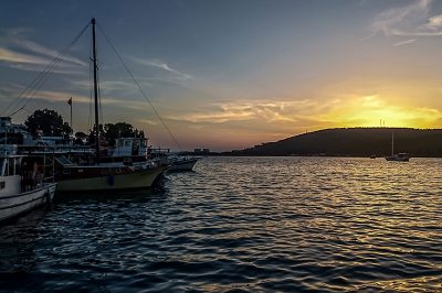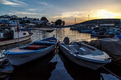 Akşam olup bu güzel şehirden ayrılma vakti geldiğinde, uçağımız 22:25’te olduğu için Bodrum’un bir başka beldesi olan Güvercinlik‘te akşam yemeği yiyelim diyoruz. Bodrum’dan Güvercinlik’e ulaşmak 22 dakika (22 km), Güvercinlik’ten havalimanına ulaşmak ise 14 dakika (16 km). Dolayısıyla vaktimizi buna göre ayarlıyoruz ve Bodrum’dan Güvercinlik’e doğru yola çıkıyoruz. D330 karayolunu takip ederek deniz kenarından aheste aheste gidiyoruz Güvercinlik’e doğru. Güneş de batmak üzereyken kızıllığını gösteriyor.