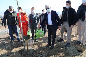 Hatay Valisi Rahmi Doğan, İskenderun, Belen, Arsuz kavşağında Şef Jale Balcı öncülüğünde gönüllüler tarafından oluşturulan Mabet Ağacı Ormanı fidan dikim törenine katıldı.